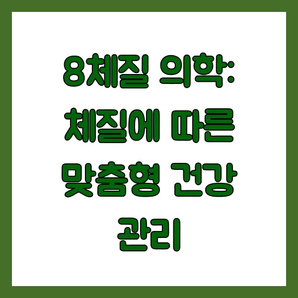 8체질 의학: 체질에 따른 맞춤형 건강 관리