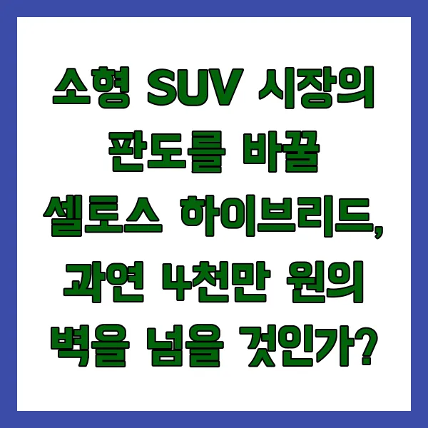 소형 SUV 시장의 판도를 바꿀 셀토스 하이브리드, 과연 4천만 원의 벽을 넘을 것인가?