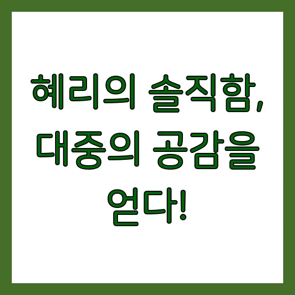 혜리의 솔직한 감탄사는 단순한 에피소드를 넘어, 대중의 공감을 불러일으키는 중요한 요소로 작용했습니다. 스타라는 이미지를 내려놓고, 팬들과 마찬가지로 다른 스타의 아름다움에 감탄하는 모습은 혜리의 인간적인 매력을 더욱 돋보이게 했습니다. 이는 혜리의 털털하고 솔직한 성격을 다시 한번 확인시켜주는 계기가 되었습니다.