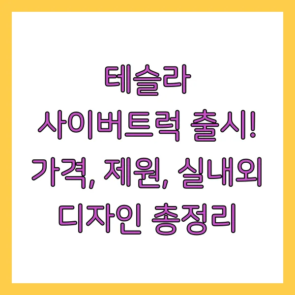 사이버트럭은 단순한 신차 출시가 아닙니다. 혁신적인 디자인, 압도적인 성능, 미래지향적인 기술력, 그리고 넓은 실내 공간까지! 사이버트럭은 기존 픽업트럭 시장의 모든 것을 뒤흔들 게임 체인저가 될 것입니다. 자동차 업계에 새로운 혁신을 가져올 사이버트럭의 미래가 정말 기대되지 않나요?