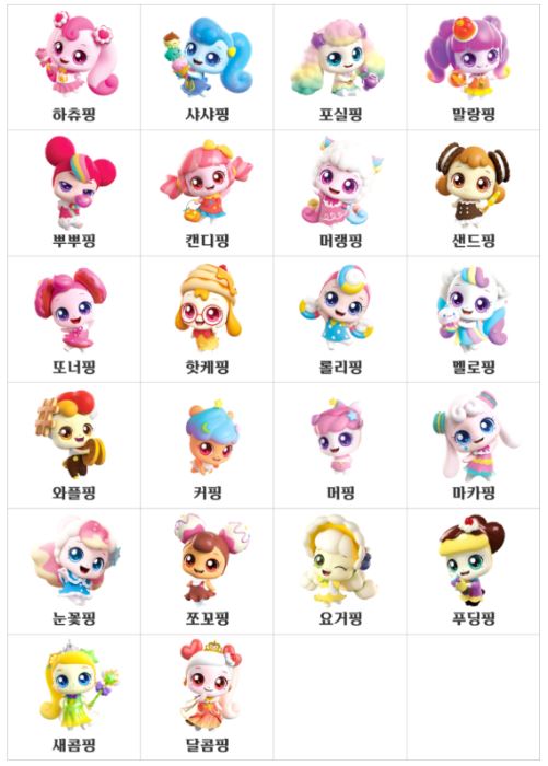 - 말랑핑 (재미의 핑): 재미😂와 유쾌함을 추구하는 로얄티니핑! 유쾌한 웃음과 재미있는 행동으로 주변을 즐겁게 만들어요.