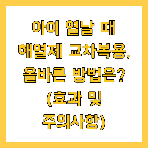 아이가 갑자기 열이 펄펄 끓으면 부모님들 마음은 정말 초조해지죠.ㅠㅠ 해열제를 먹여도 열이 잡히지 않을 때, 해열제 교차 복용이라는 선택지가 떠오르지만, 정확한 정보 없이 시도했다간 오히려 독이 될 수도 있다는 사실! 알고 계셨나요? 이 글에서는 소아 해열제 교차 복용에 대한 A to Z, 효과적인 해열 관리법까지 몽땅! 알려드립니다. 아세트아미노펜, 이부프로펜 등 해열제 종류부터 복용법, 주의사항까지 꼼꼼히 챙겨 아이의 건강을 지켜주세요!