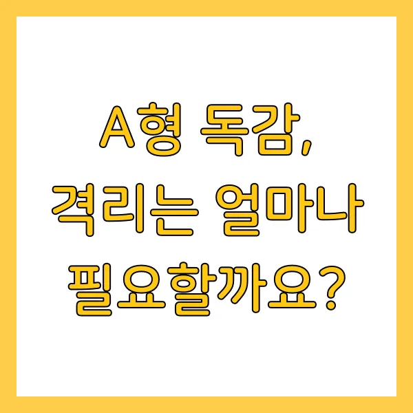 격리? 생각만 해도 답답하죠! 하지만 A형 독감은 전염성이 매우 강하기 때문에, 나와 모두를 위해 꼭 필요한 과정이랍니다. 법적 의무는 아니지만, 자발적 격리가 강력히 권고 됩니다. 일반적으로 증상이 나타난 후 5~7일, 해열 후 24시간 이상 격리하는 것이 좋습니다. 특히 면역력이 약한 분들(어린이, 노인, 만성 질환자)과 함께 생활한다면?! 증상이 완전히 없어질 때까지 격리하는 것이 안전합니다. 격리 해제 후에도 마스크 착용과 손 씻기는 필수! 잊지 않으셨죠? 😊